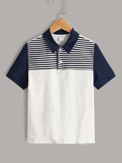 SHEIN Boys Colourblock Striped Contrast Collar Polo Shirt - Multicolor - View 1