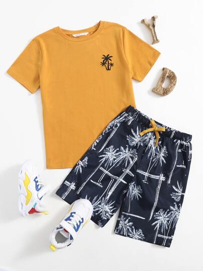 SHEIN Boys Tropical Print Top & Shorts Set - Multicolor - View 1