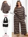 SHEIN CURVE+ Plus Size Solid Color Minimalist Daily Wear Round Neck Long Sleeve Top And Pants 2-Piece Set/Winter