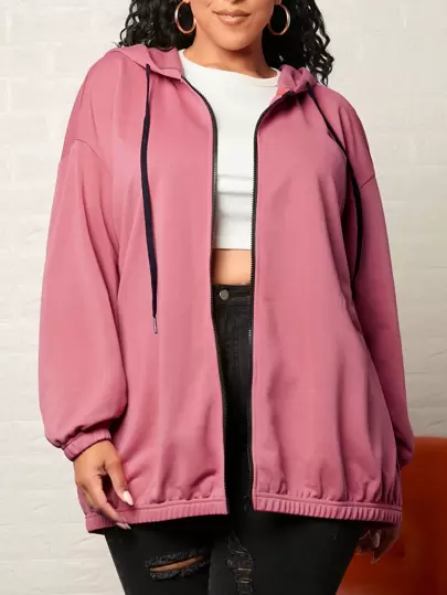Review: 🙂 A plus sized ladies zip up hooded jacket with back print. A soft pink colour with hood, long sleeves, full length zip and a back print of black text. A nice longer length generous fit in a nice fabric with a strong sturdy zip. Well made, good quality, nice colour, size, style and design, a generous fit and a great price in the sale 🙂 If you have found this review to be helpful to you at all then please leave a like thank you 👍