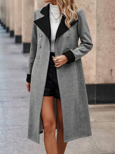 SHEIN Clasi Contrast Panel Double Breasted Overcoat - Grey - View 1