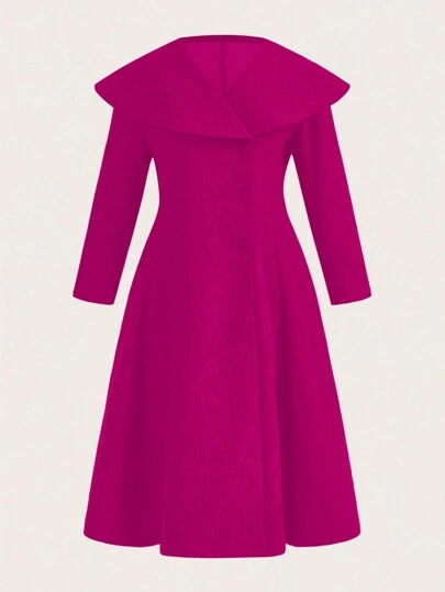 SHEIN Clasi Plus Solid Double Breasted Overcoat - Hot Pink - View 1