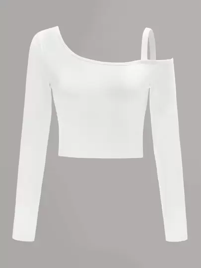 Muchica Asymmetrical Neck Cold Shoulder Rib-knit Top - White - View 1