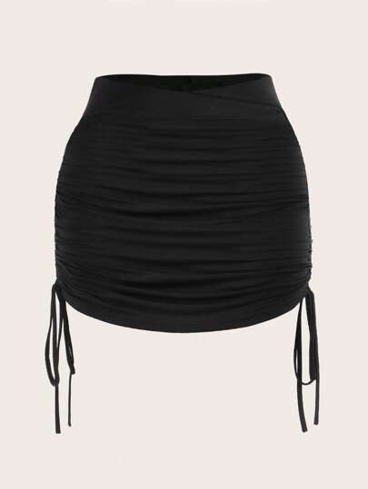 SHEIN EZwear Black Drawstring Side Ruched Bodycon Skirt - Black - View 1