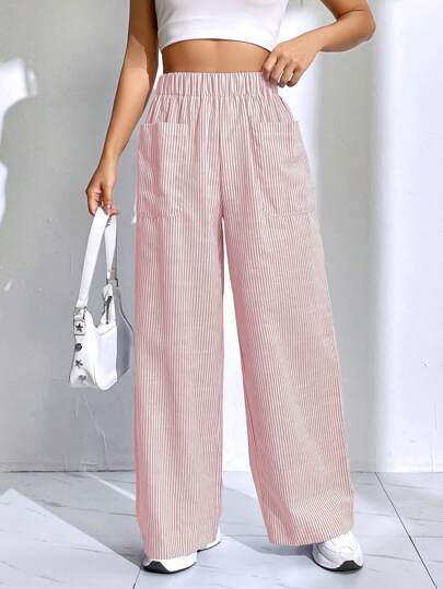 SHEIN EZwear Striped Print Wide Leg Pants - Pink - View 1