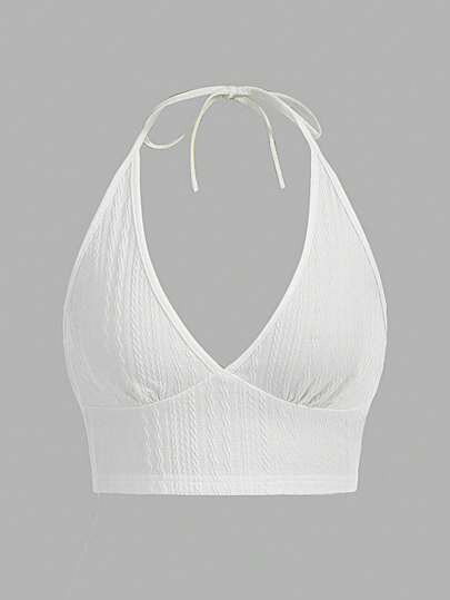 SHEIN EZwear Summer Solid Backless Crop Halter Top - White - View 1