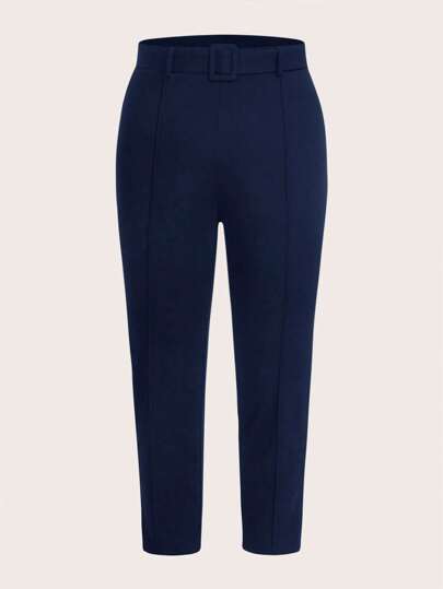 SHEIN Essnce Plus Solid Belted Trousers - Navy Blue - View 1