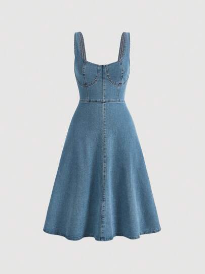 SHEIN MOD Zip Back Denim Tank Dress, Fall Women Clothes - Medium Wash - View 1