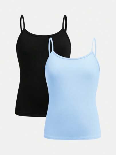 SHEIN Girlism Tween Girls 2pcs/Set All-Match Slim Fit Simple Basic Cami Top - Baby Blue - View 1