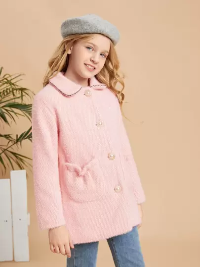 SHEIN Girls Dual Pocket Button Front Coat - Baby Pink - View 1