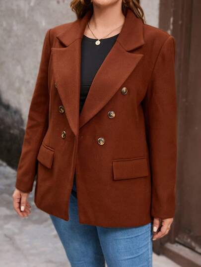 SHEIN LUNE Plus Lapel Neck Double Breasted Blazer - Bronze - View 1