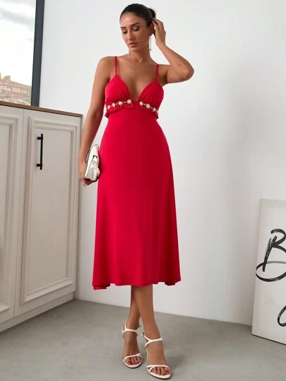 SHEIN Cottnline Leather Tie Detailed Jacket And Pants Set - Red - View 5