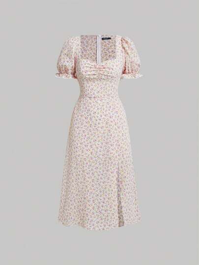 SHEIN MOD Ditsy Floral Print Ruched Bust Split Thigh Dress - Multicolor - View 1