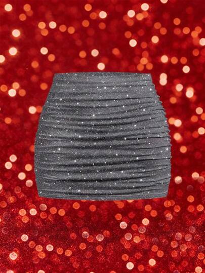 SHEIN MOD Women's Casual Minimalist Ruched Bodycon Mini Skirt, Silver Glitter Pattern - Multicolor - View 1