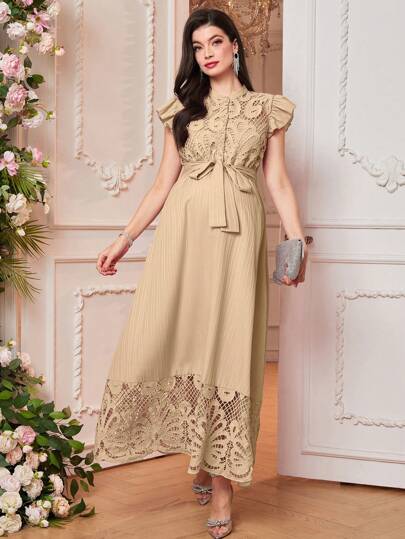 SHEIN Maternity Simple & Fashionable Dress, Suitable For Summer - Apricot - View 1