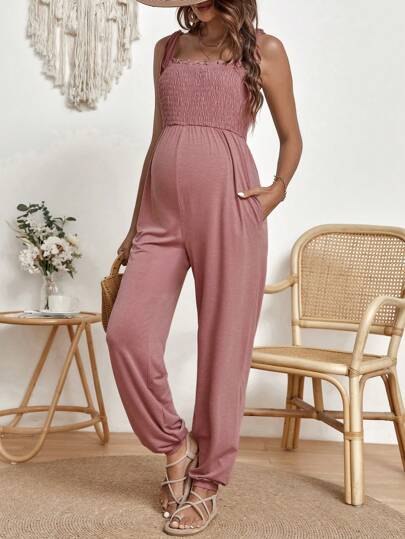 SHEIN Maternity Solid Slant Pocket Cami Jumpsuit - Dusty Pink - View 1