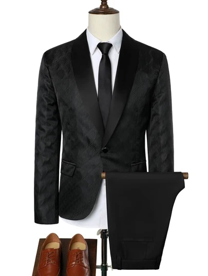Manfinity Mode Men Jacquard Shawl Collar Blazer & Suit Trousers - Black - View 1