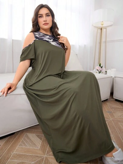 Mulvari Plus Camo Print Cold Shoulder Dress - Multicolor - View 1