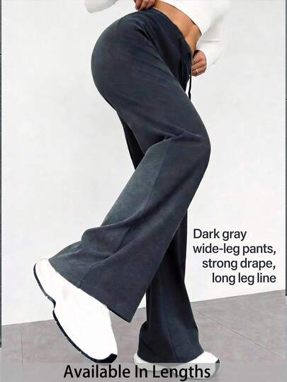 SHEIN PETITE CURVE Plus Size Casual Solid Color Casual Flare Pants Pants Flare Leg Knit Pants Flared Sweatpants - Grey - View 5