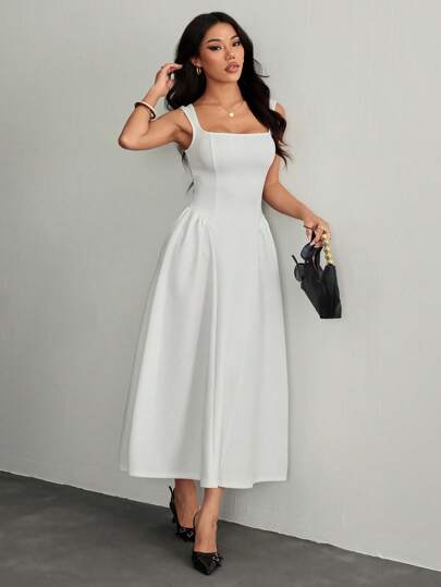 SHEIN PETITE Elegant Sleeveless Solid Color Dress, Summer - White - View 1