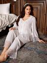 PalaceNights Fluffy Trim Button Front Long Sleeve Top & Long Pants Sleepwear Pajama Set Holiday Season, Fall Winter Clothes, Cozy