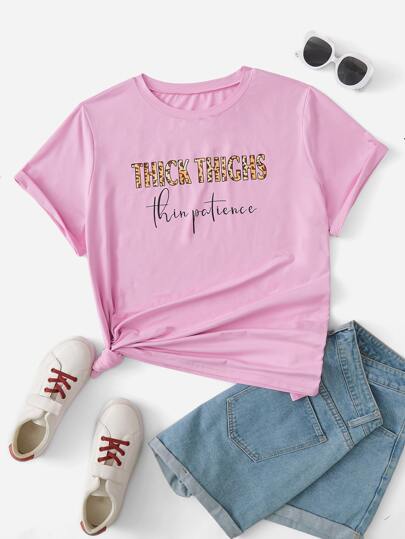 SHEIN Unity Plus Slogan Graphic Tee - Pink - View 1