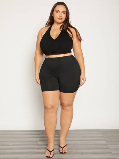 SHEIN Privé Plus Solid High Waist Cycling Shorts - Black - View 5