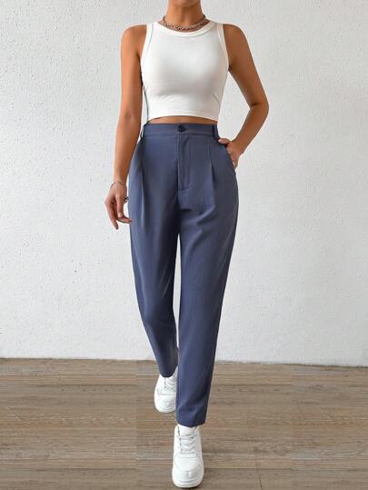 Chiquease Women's High-Waisted Tapered Pants With Pockets - Grey - View 1