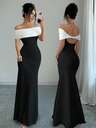 SHEIN Raffinéa Women's Elegant Black Starry Sky Sequin Pearl Decor Stand Collar Chiffon Splice Cape Sleeve Luxury Party Mini Dress
