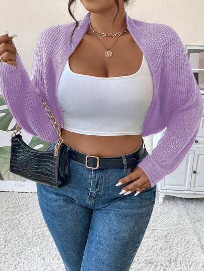 Calvaya Plus Size Batwing Sleeve Cropped Casual Cardigan, Spring & Autumn - Mauve Purple - View 1