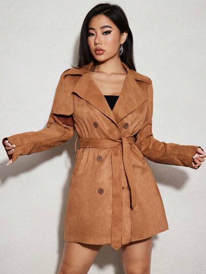 SHEIN SXY Double Breasted Belted Trench Coat - Khaki - View 1