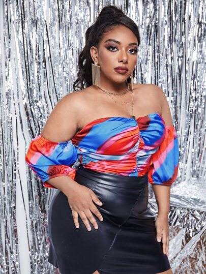 SHEIN SXY Plus Colourblock Ruched Off Shoulder Satin Bodysuit - Multicolor - View 1