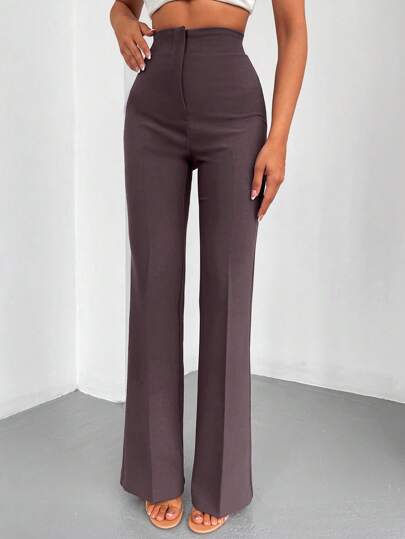 EURMUSE Solid Flare Leg Pants - Brown - View 1