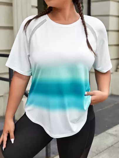 Easithlete Plus Ombre Raglan Sleeve Curved Hem Sports Tee - Multicolor - View 1