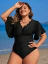 SHEIN 1 Set Plus Size Women Navy Casual Vacation One-Piece Swimsuit With Cover Up Brown Plus Size Swimsuit For Summer
