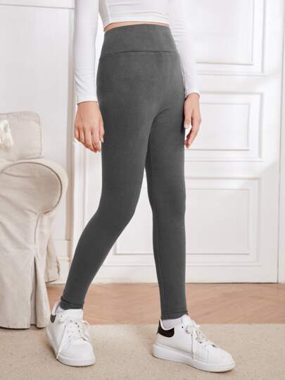 SHEIN Teen Girls Ribbed Knit Wideband Waist Leggings - Dark Grey - View 1