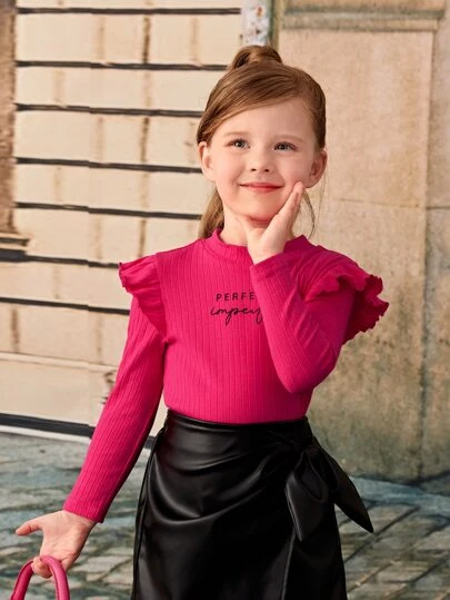 SHEIN Toddler Girls Letter Graphic Ruffle Trim Tee - Hot Pink - View 1