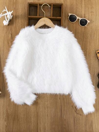 SHEIN Tween Girl Solid Fuzzy Sweater - White - View 1