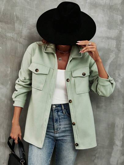 SHEIN Unity Flap Pocket Drop Shoulder Coat - Green - View 1