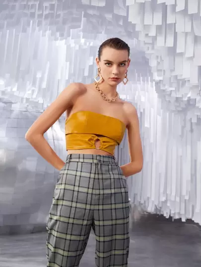 SHEIN Unity O-ring Front Crop PU Leather Tube Top - Ginger - View 5