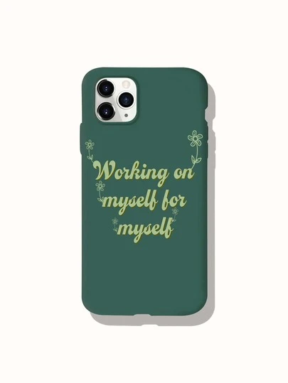 Lunar Felix Art Flower & Slogan Graphic Phone Case - Dark Green - View 1