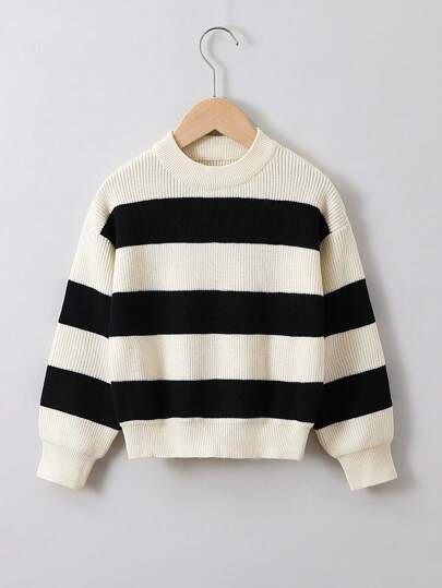 SHEIN Young Girl Two Tone Drop Shoulder Sweater - Apricot - View 1