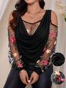 SHEIN Privé Plus Size Elegant Versatile Vacation Chic Afternoon Tea Slightly Sexy Date Music Concert Party INS Style Women's Shoulder Strap Splice Design Black Glitter Mesh Semi-Sheer Splice Side Slit Fitted Knee-Length Black Dress, Suitable For Valentine's Day, Music Concert, Performance, Date, Formal Banquet, Prom, Wedding Season, Sexy, Elegant, Commute, Back To School, Vacation, Beach, Graceful Romantic, Office Lady, Mermaid Style, Birthday Party,Fall Clothes For Women,Elegant Dresses For Women