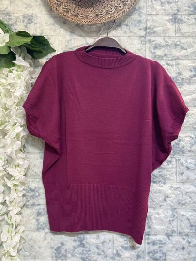 SHORT SLEEVE MODAL KNITTED BAT TOP - Purple - View 1