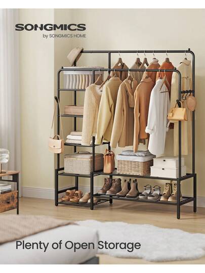SONGMICS Clothes Rack, Open Waedrobe, Metal Coat Rack With 7 Shelves, Hanging Rods, For Bedroom, Living Room, Hallway, Black HSR182B01 - Black - View 1