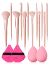 10pcs High Quality Multi-Functional Makeup Brush Set + 4pcs Makeup Sponge Blender Egg Mini + 1pc Large Capacity Travel Makeup Organizer