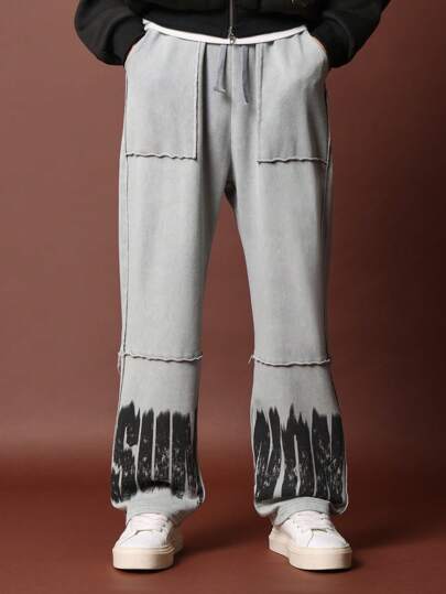 SUMWON Distressed Streetwear Sweatpants Relaxed Stitched Panel Detail Urban Loungewear Fall Winter Fashion Track Pant Sport Athleisure Bottom - Light Grey - View 1