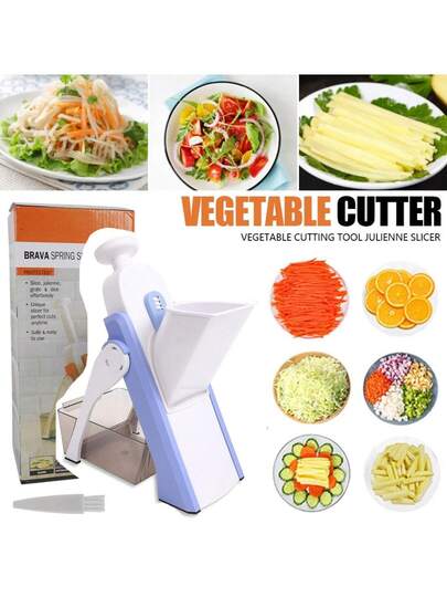 Practical Kitchen Gadgets, Compact Vegetable Slicer With 4 Cutting Types: Slicing, Julienne, Strip And Dicing, 420 Stainless Steel Cutter With Brush For Fruits Potato Carrot Onion, Good Gift In Kitchen, Blue - Blue - View 1