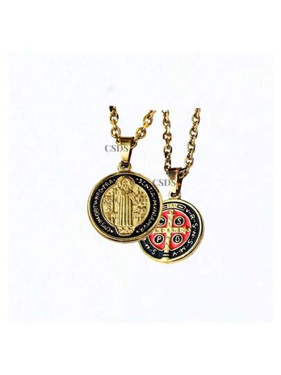 Saint George Medal 2mm Black With Red Medal And Steel Chain Premium Line - Gold - View 1