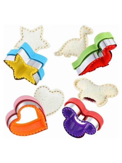 Sandwich Cutter And Sealer Set, Including 4pcs Bread Sandwich Decruster Pancake Maker DIY Cookie Cutters In The Shapes Of Heart, Dinosaur, And Star. Suitable For Kids' Bento Box (random Color) - Multiple Colors - View 1